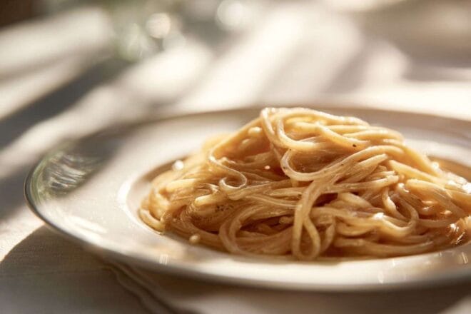 Image d'illustration. Assiette de pâtes minimaliste avec sauce légèreADN