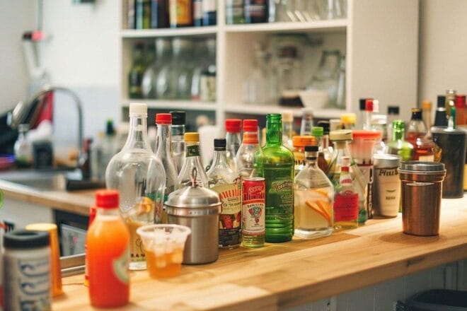 Image d'illustration. De nombreuses bouteilles d'alcool. ADN